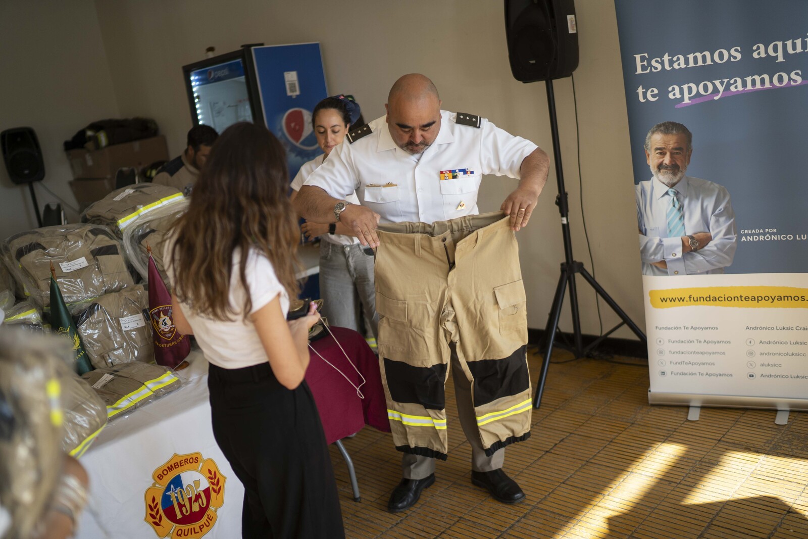 Con el objetivo de apoyar y reconocer todo el esfuerzo realizado durante los megaincendios de Valparaíso en 2024, Fundación Te Apoyamos, del empresario Andrónico Luksic, entregó 100 nuevos uniformes forestales al Cuerpo de Bomberos de Quilpué.