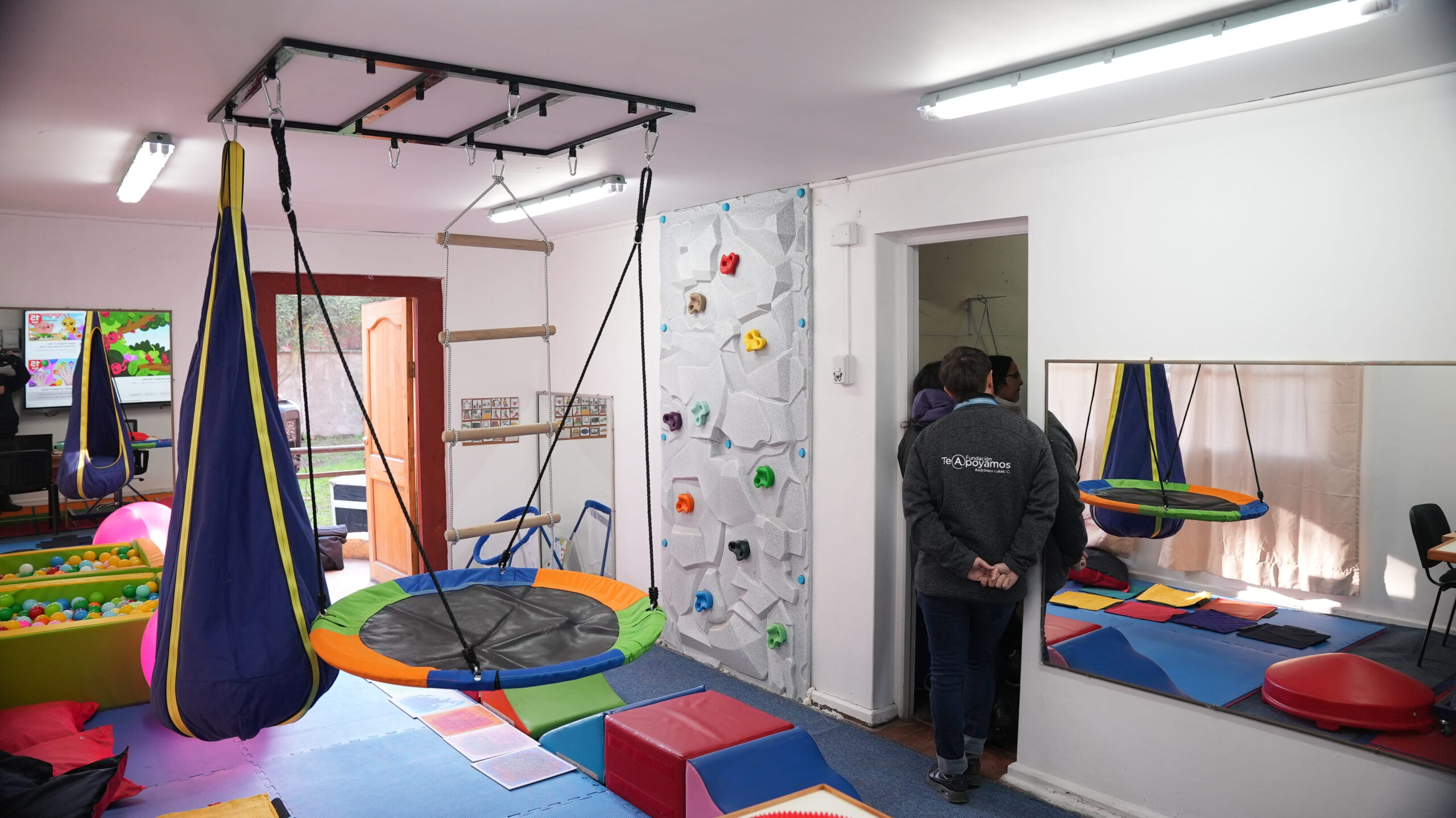 La implementación entregada por Fundación Te Apoyamos considera material de estimulación sensorial y motriz —como alfombras sensoriales, columpios, túneles, audífonos con cancelación de ruido, sillas y mesas ergonómicas—, además de equipamiento tecnológico, como tablets y una pantalla interactiva, que permitirán a los docentes contar con herramientas adecuadas para apoyar el proceso de aprendizaje.